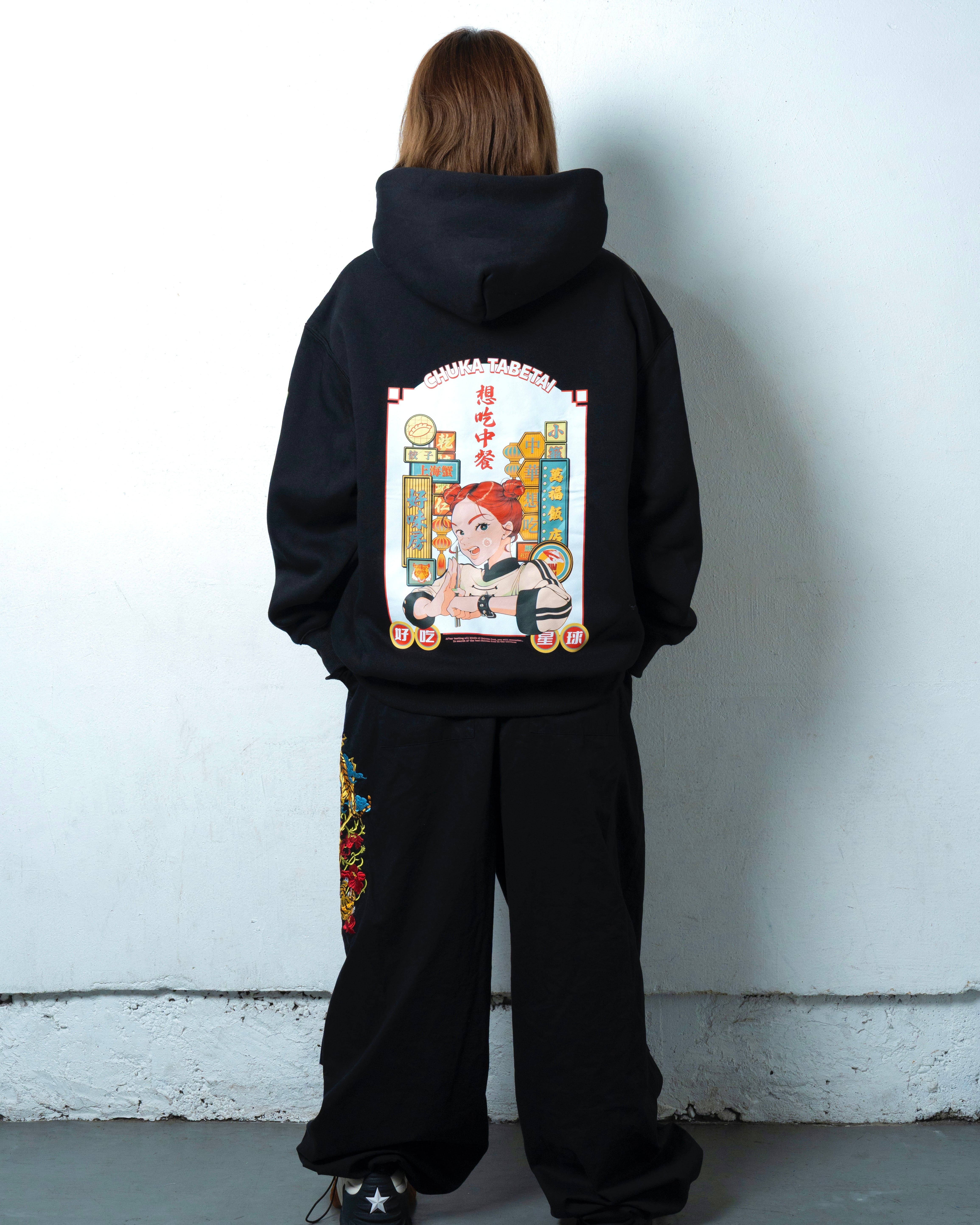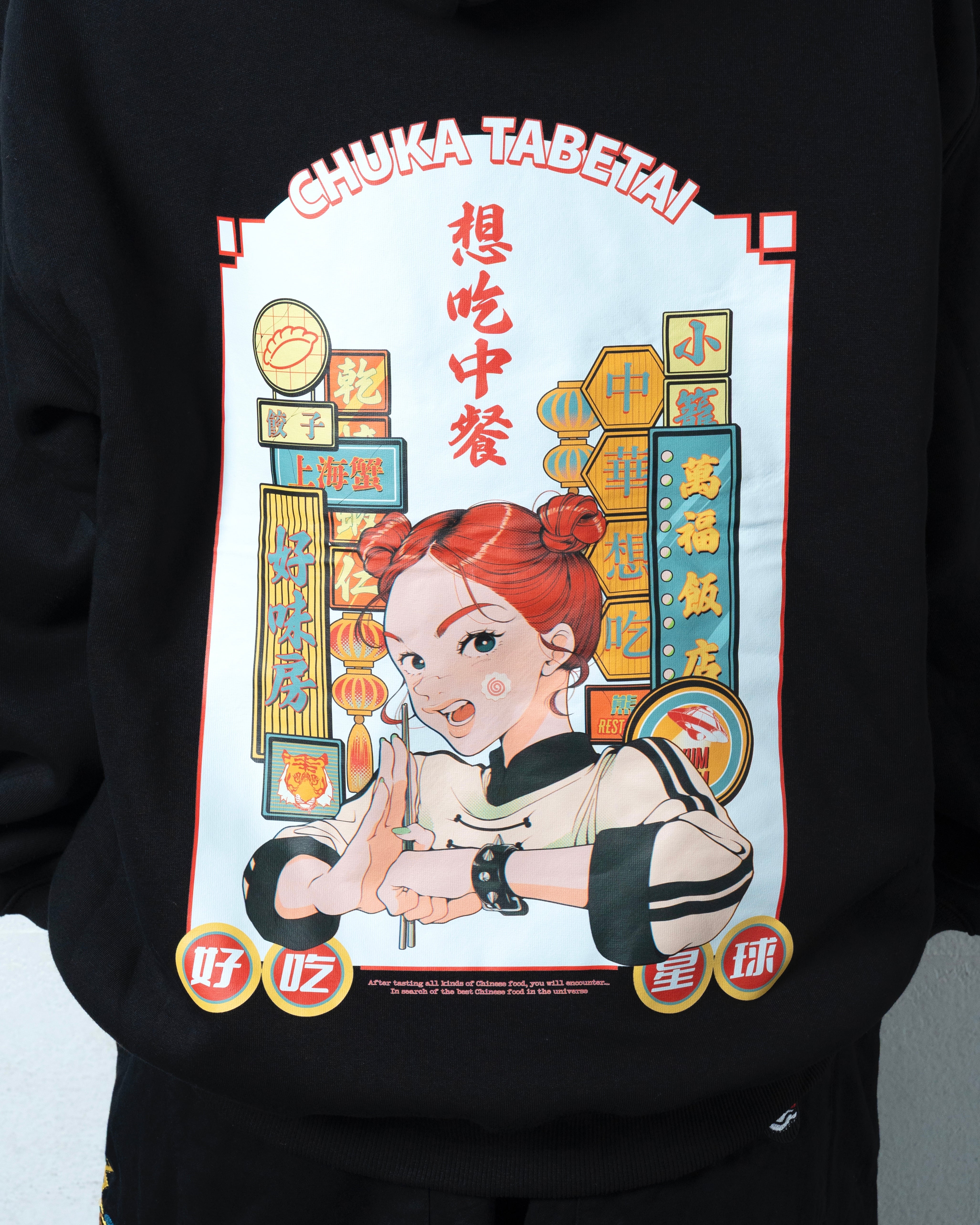 背面には「中華街」をテーマに、チャイナ服の女の子と様々なネオン看板が並んでいる「チュウカタベタイ」らしさ満載のイラスト。