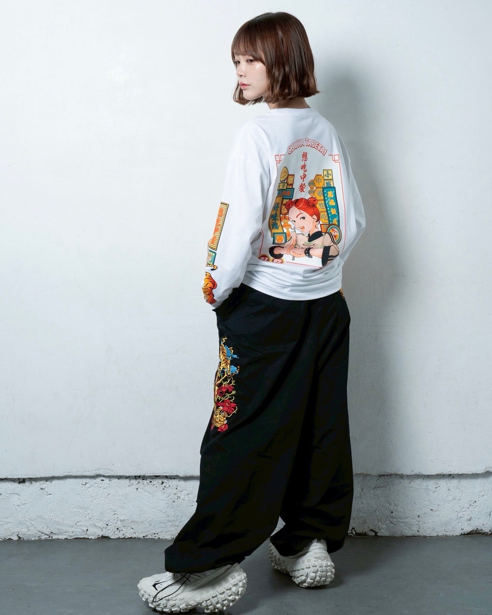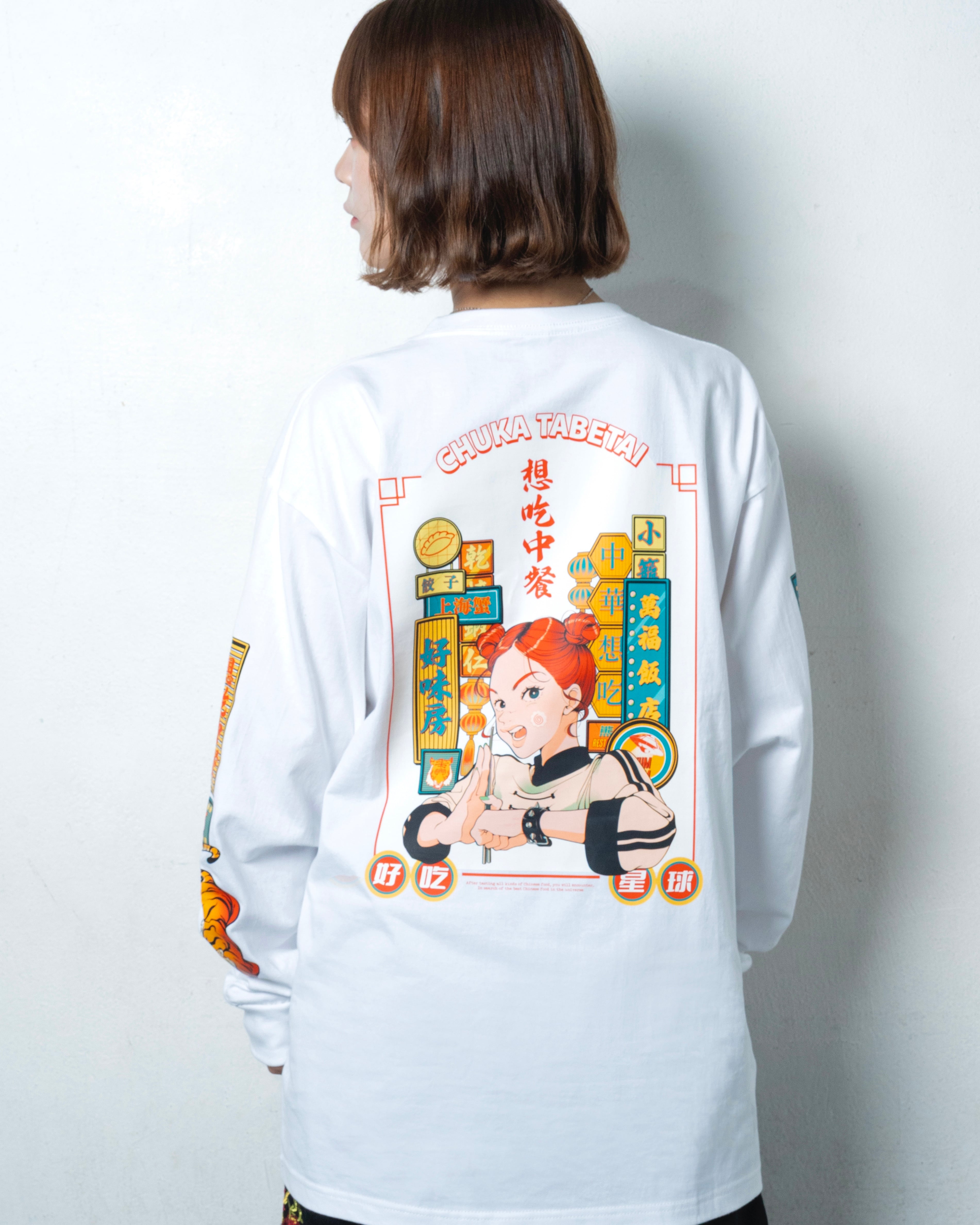 背面には「中華街」をテーマに、チャイナ服の女の子と様々なネオン看板が並んでいる「チュウカタベタイ」らしさ満載のイラスト。