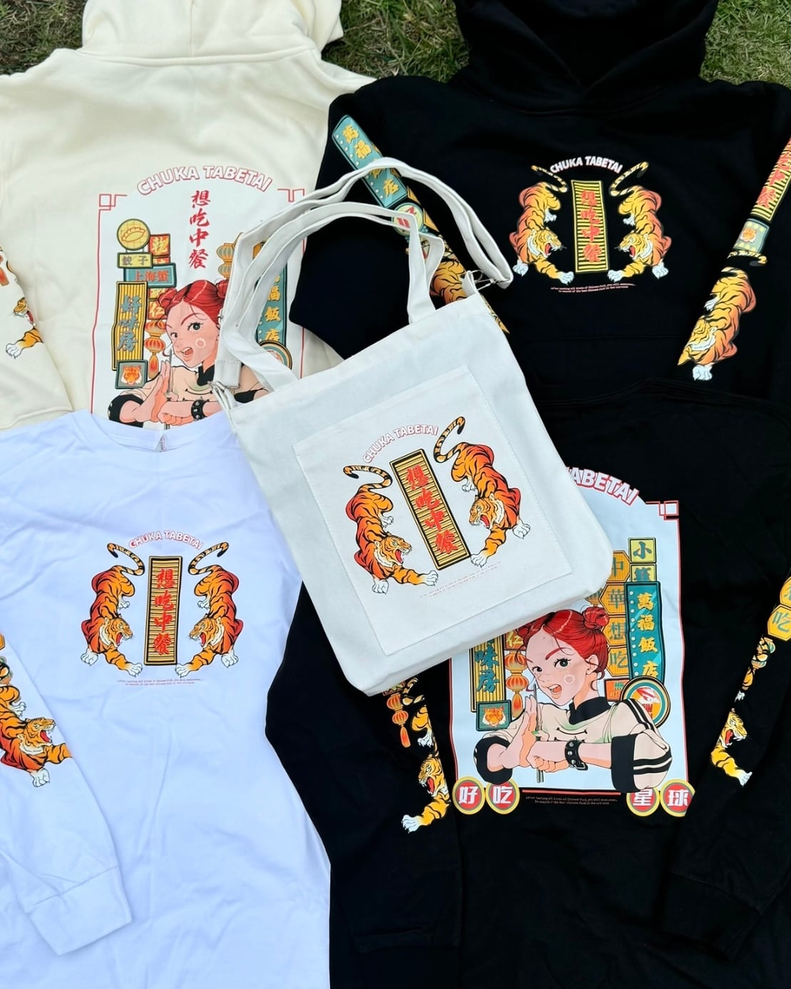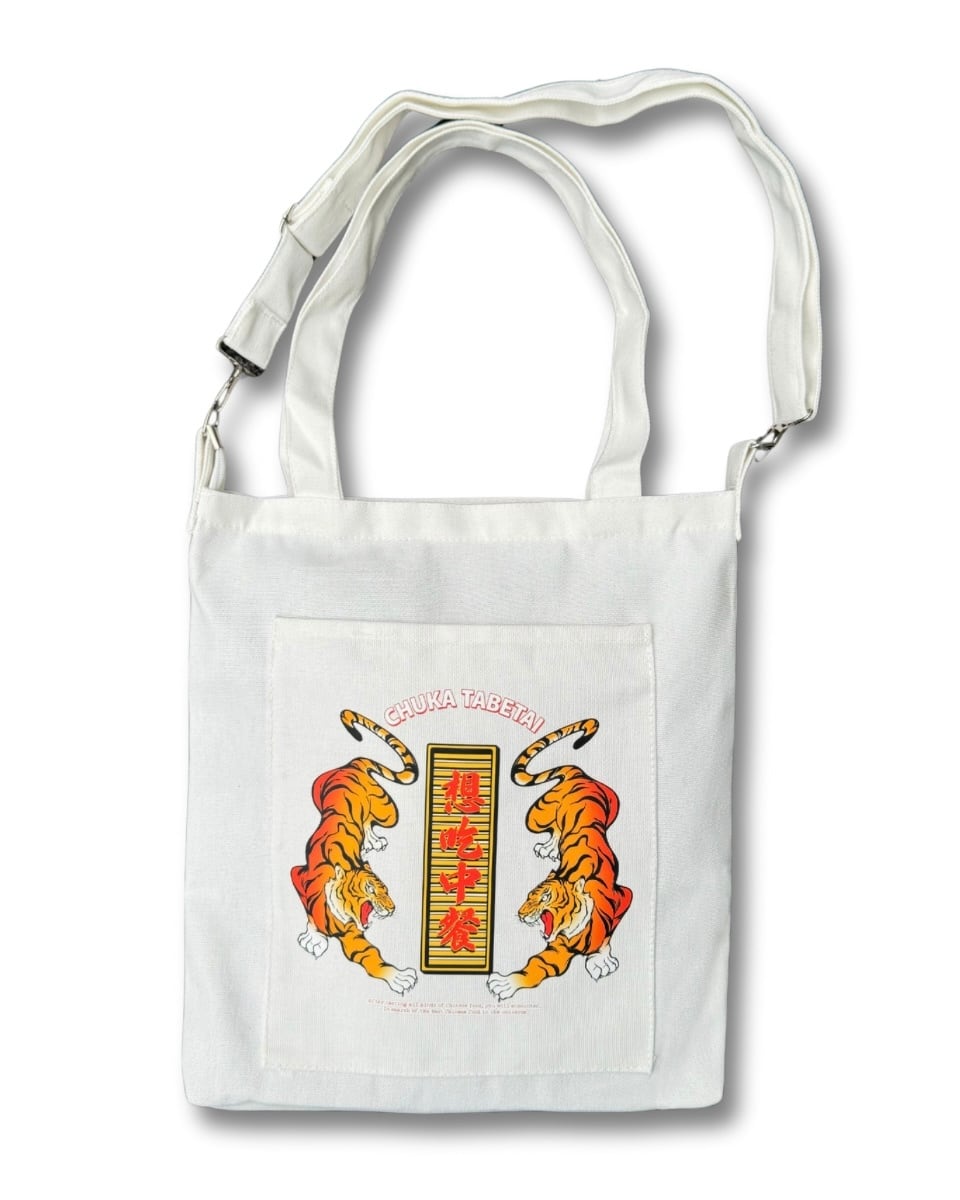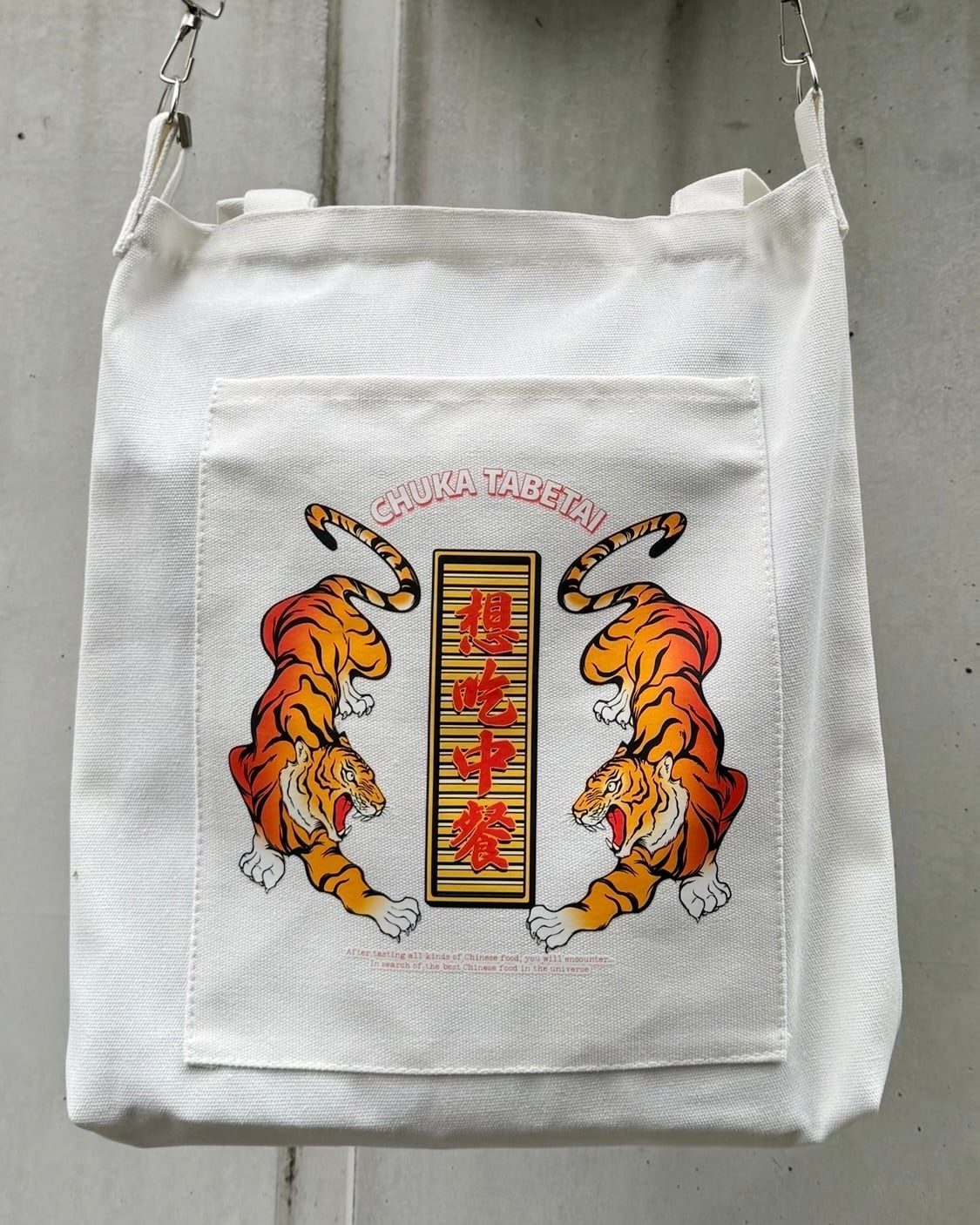 かっこいい2匹の虎と“想吃中餐(中華が食べたい)”の文字。
