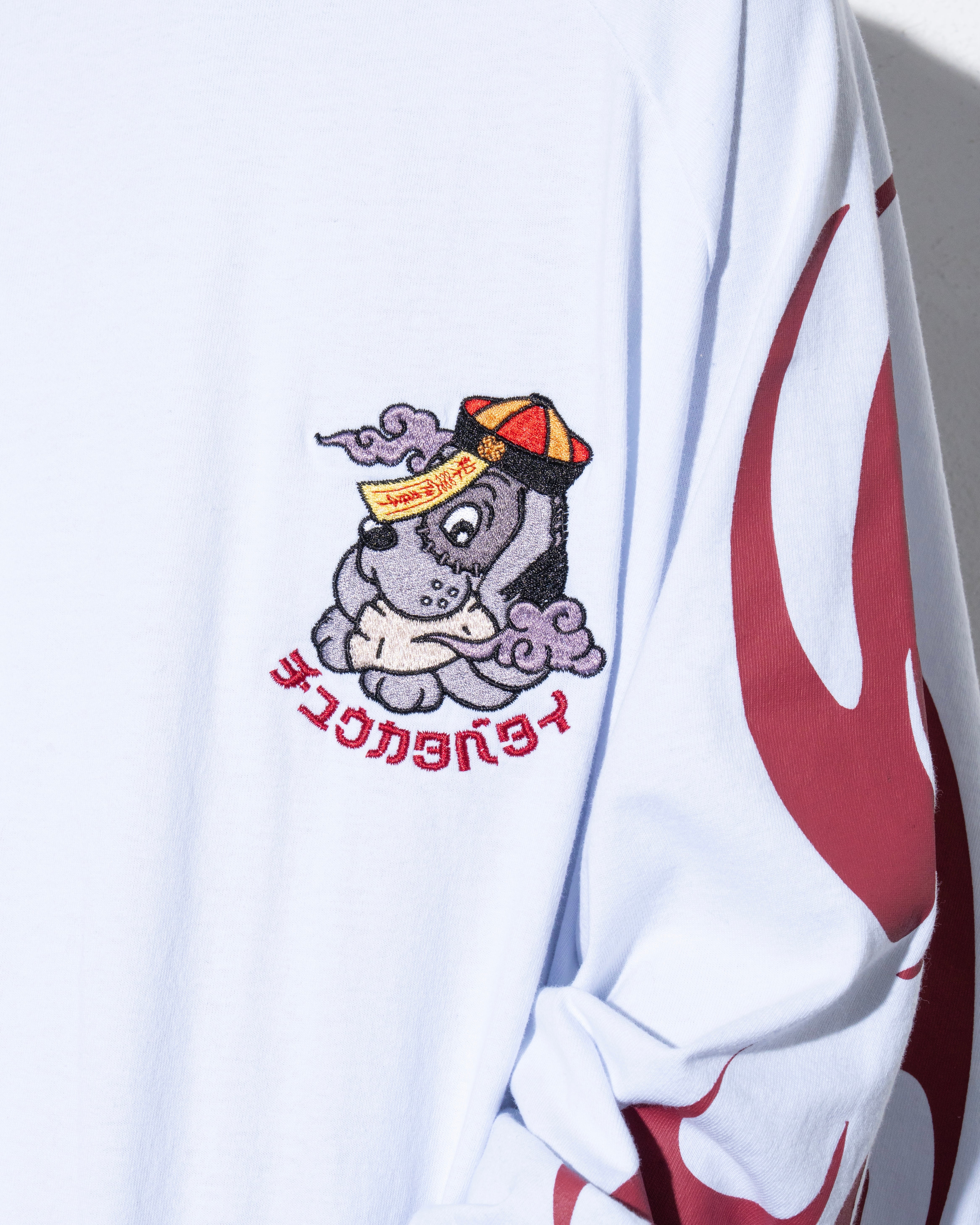 背面/胸元に「GALFY」お馴染みの可愛い犬のキャラクターが餃子を咥えた限定デザイン。