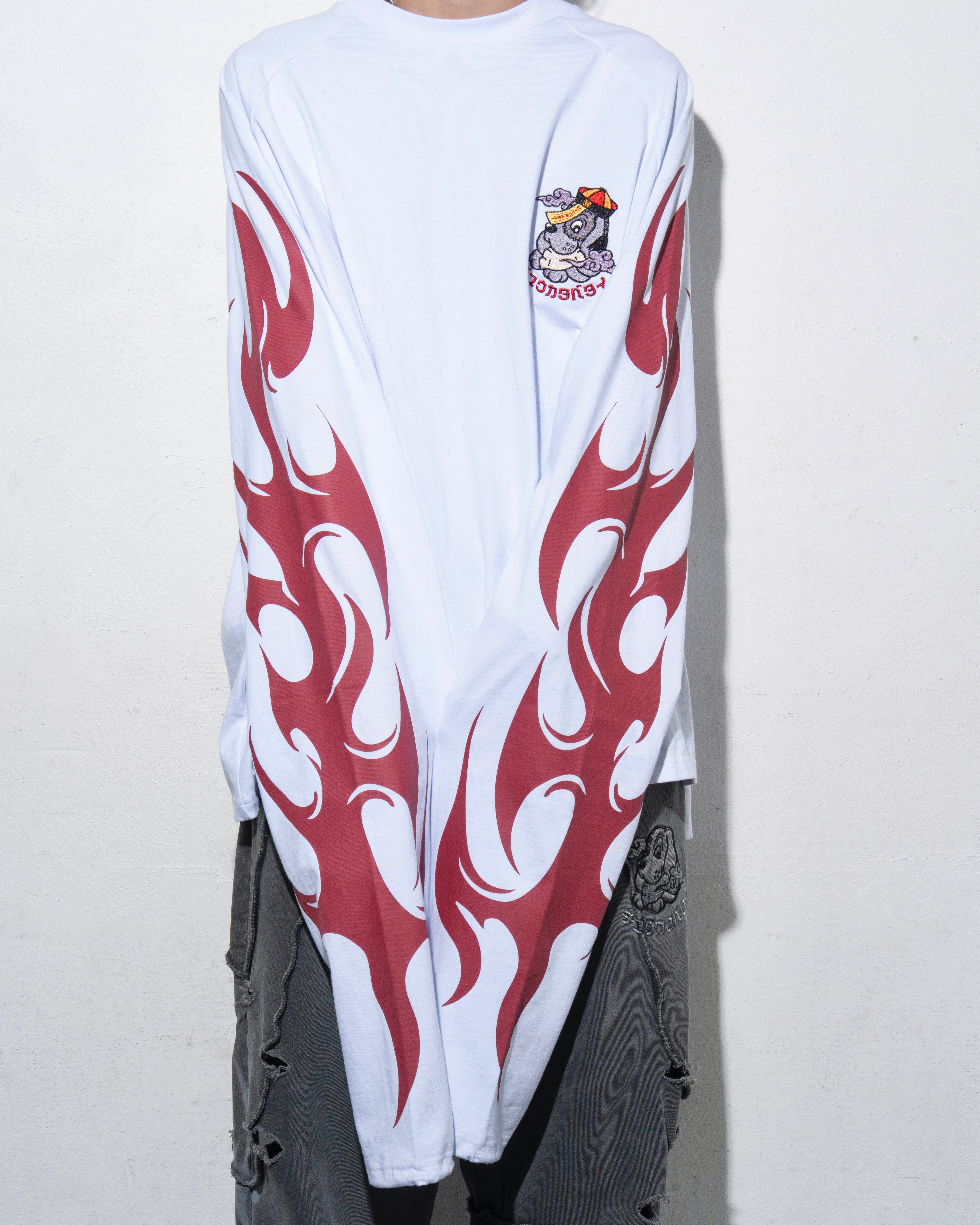 赤のファイヤーパターンが目を引く大胆デザイン。