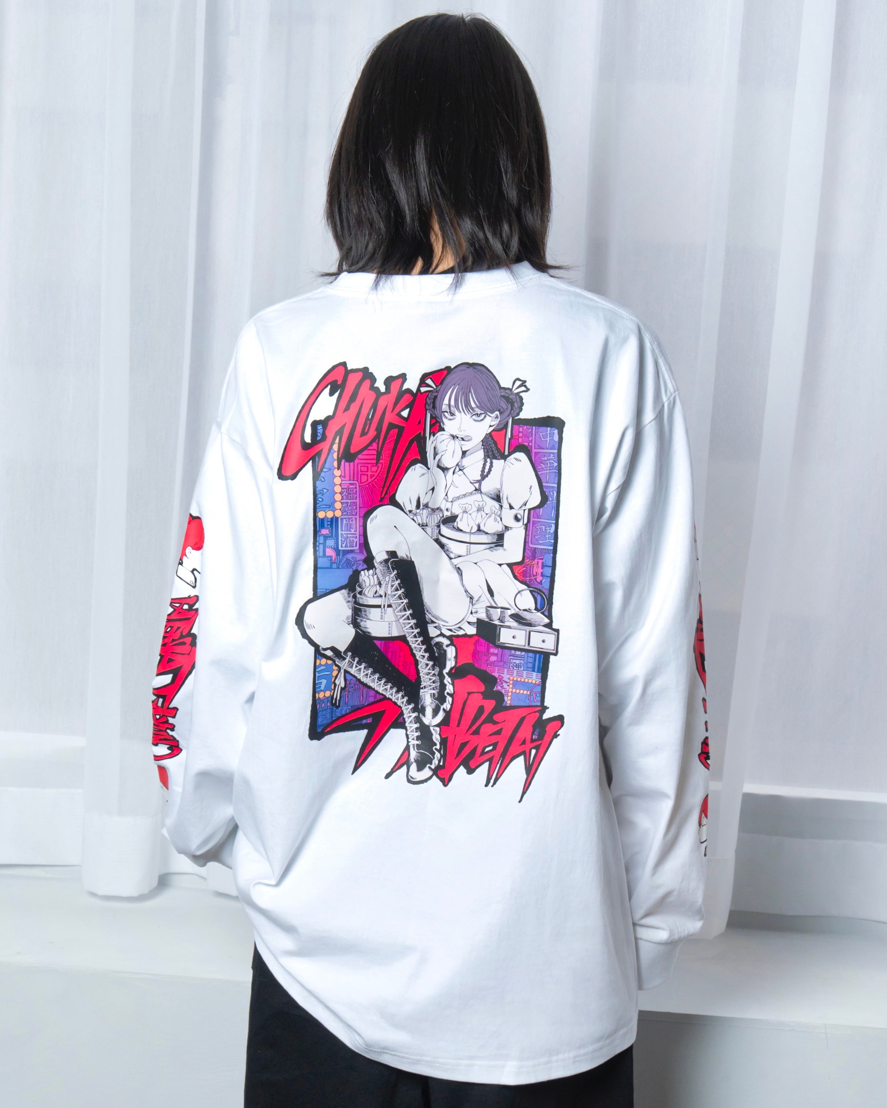 背面に点心を食べる可愛くクールな女の子をビビットカラーで大胆にデザイン。