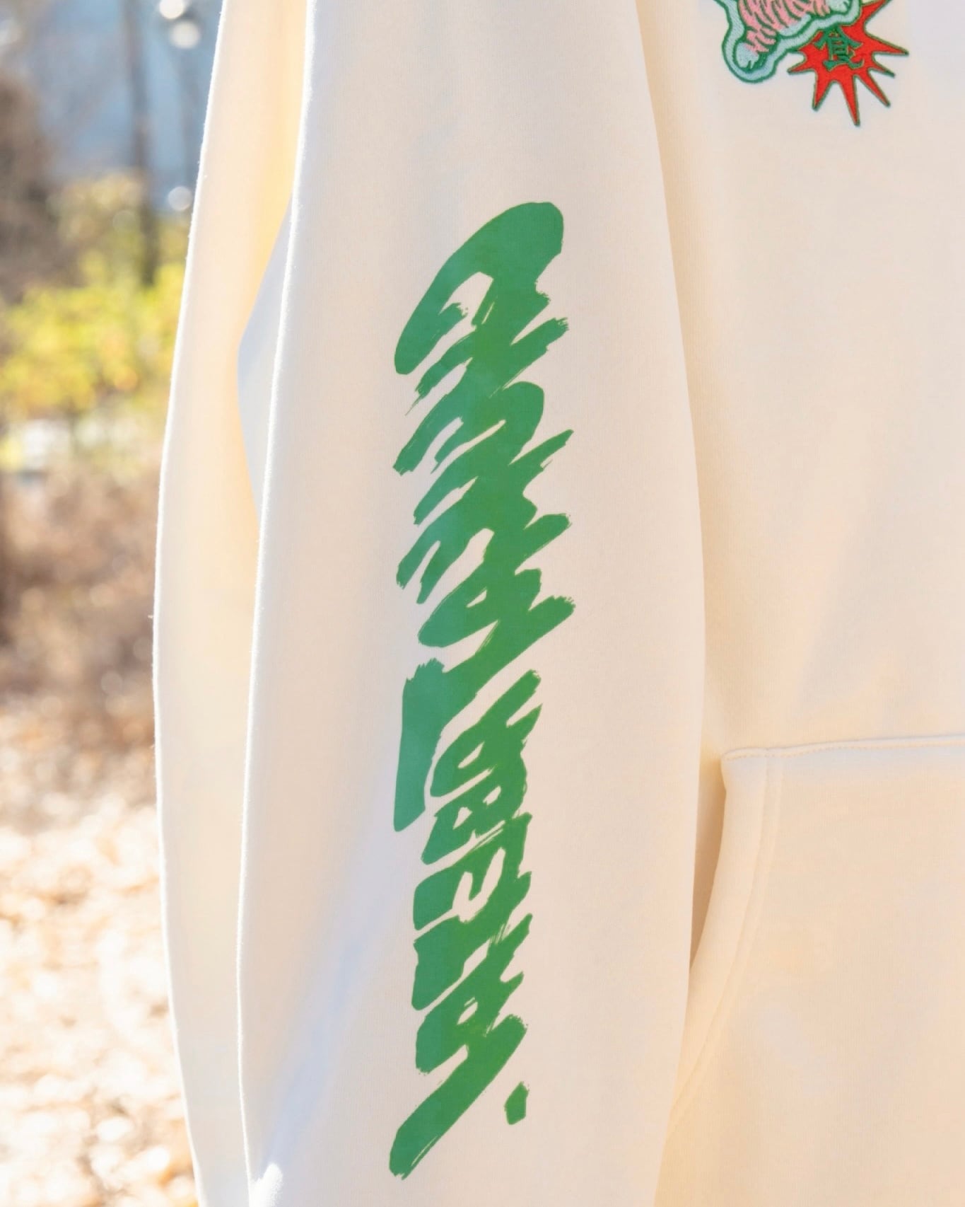 胸元/背面にもブランドロゴ文字と可愛いすぎる虎デザイン。
