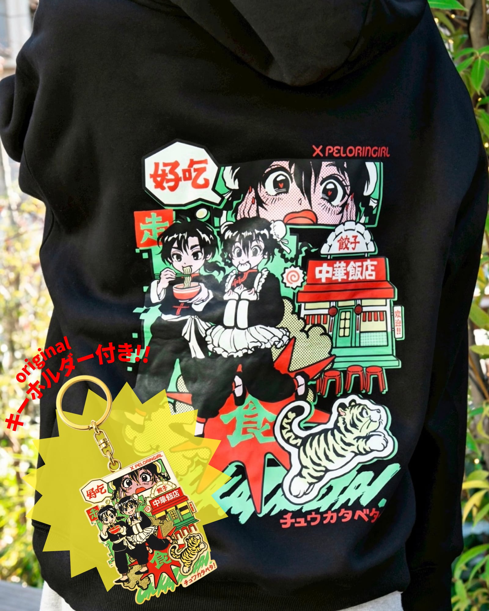 チュウカタベタイらしさ全開の、中華飯店・餃子・虎モチーフをポップに描き、ストリート×チャイナカルチャーをミックスした描き下ろしデザイン。