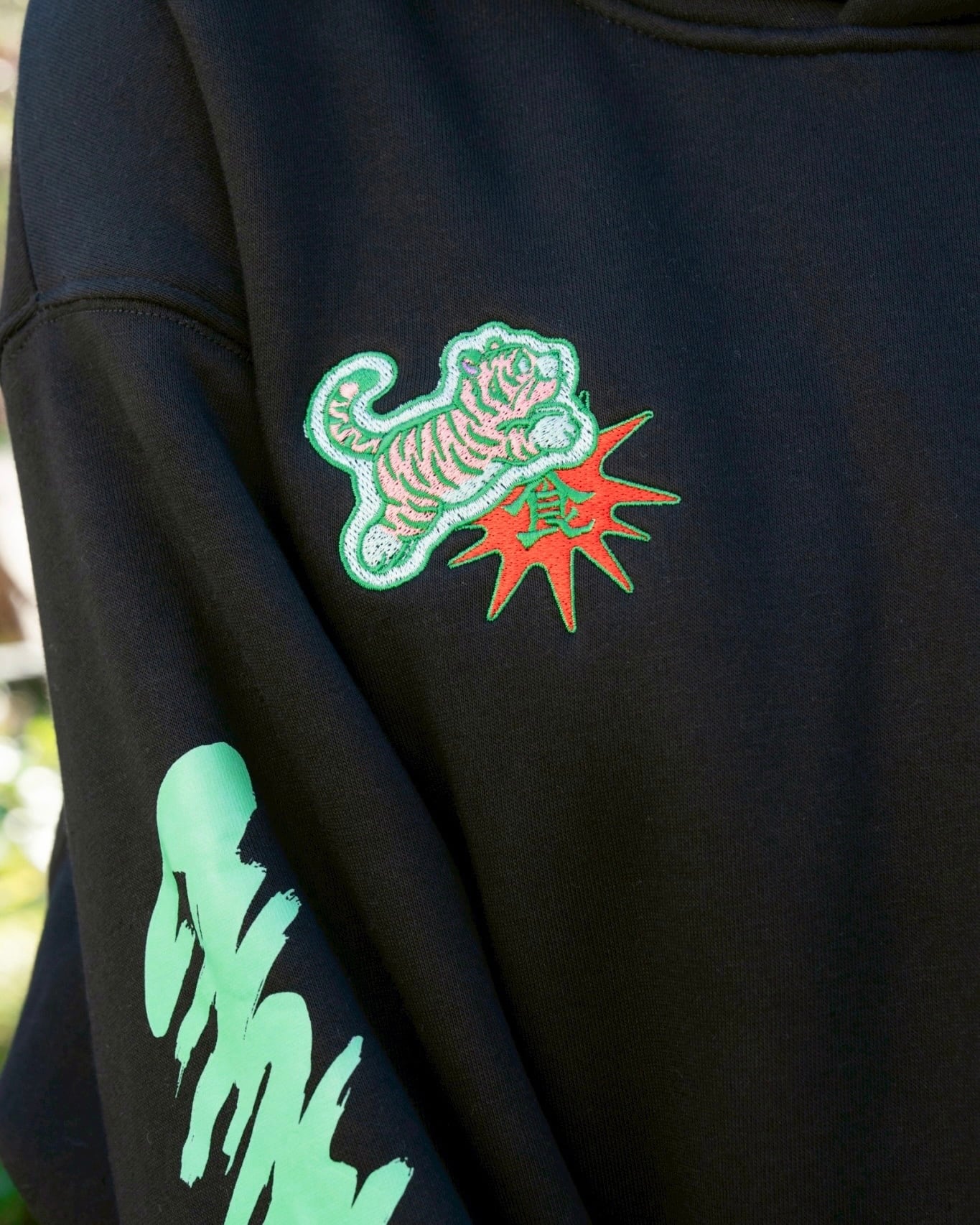 胸元/背面にもブランドロゴ文字と可愛いすぎる虎デザイン。