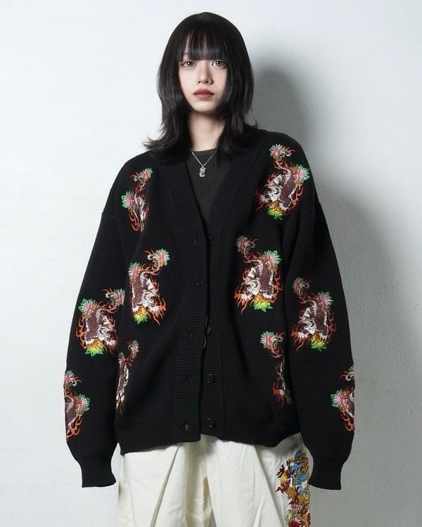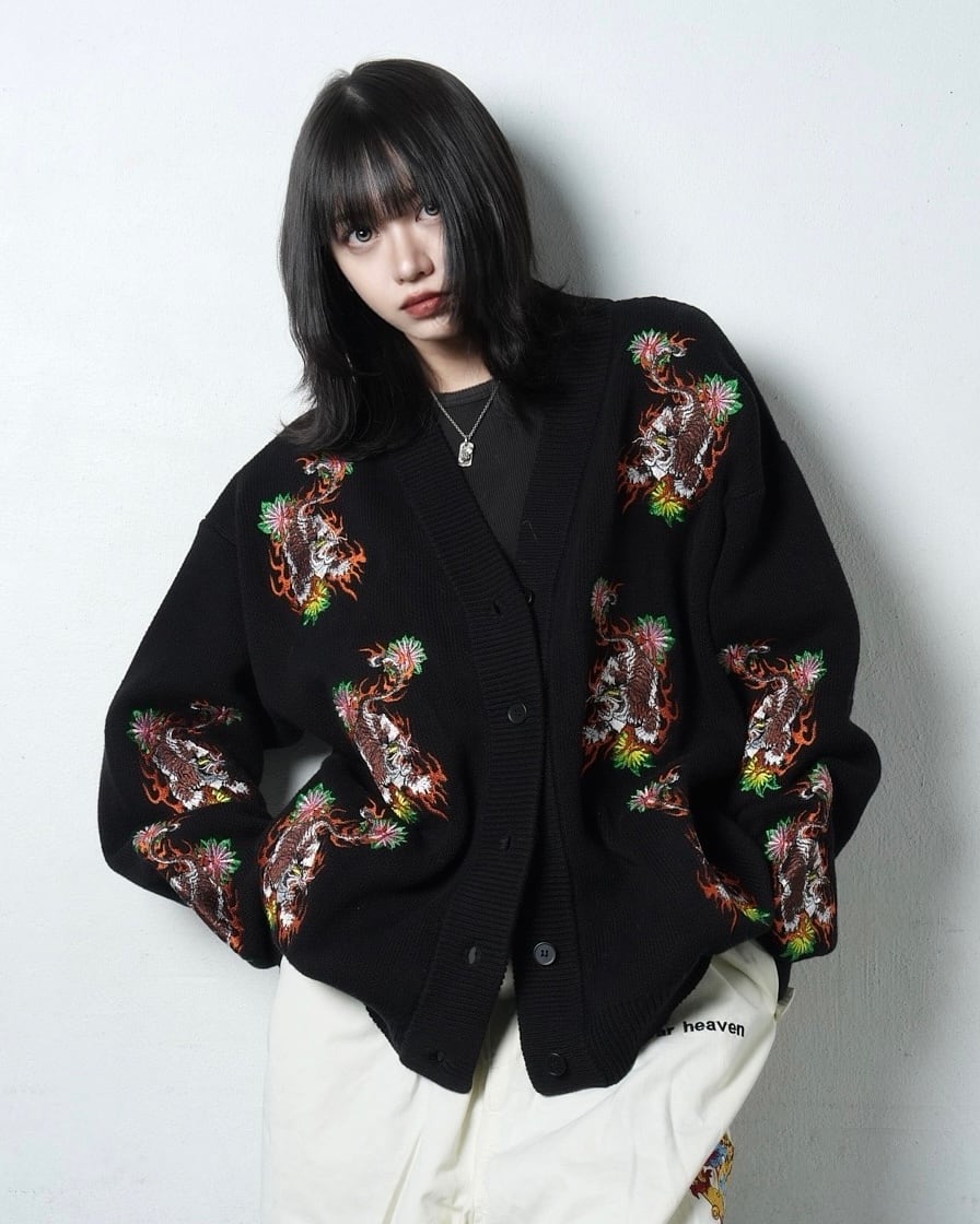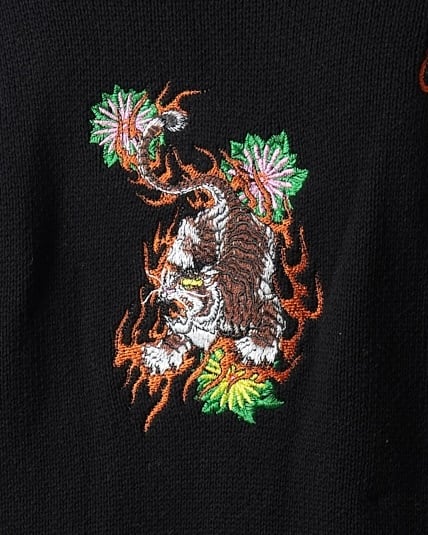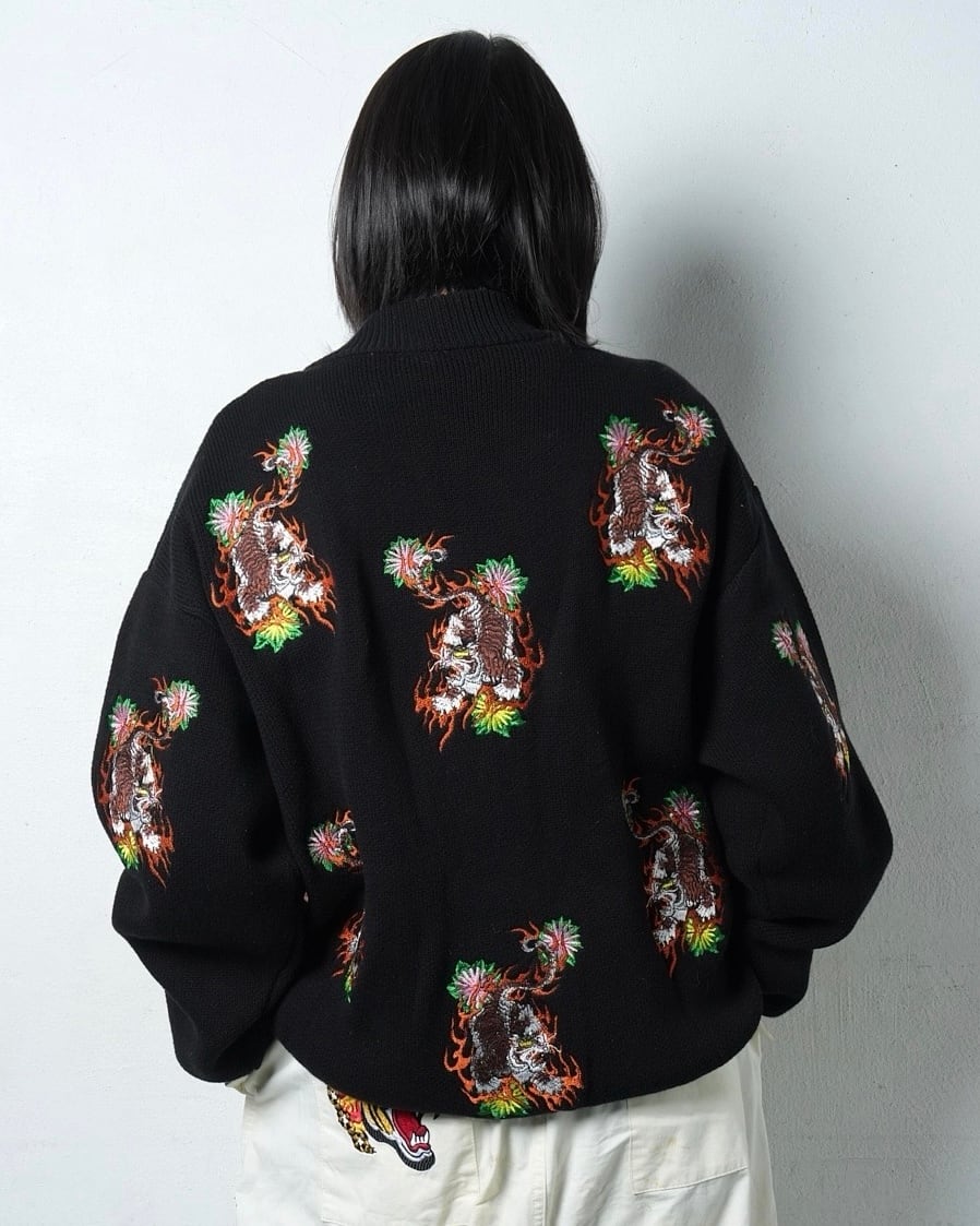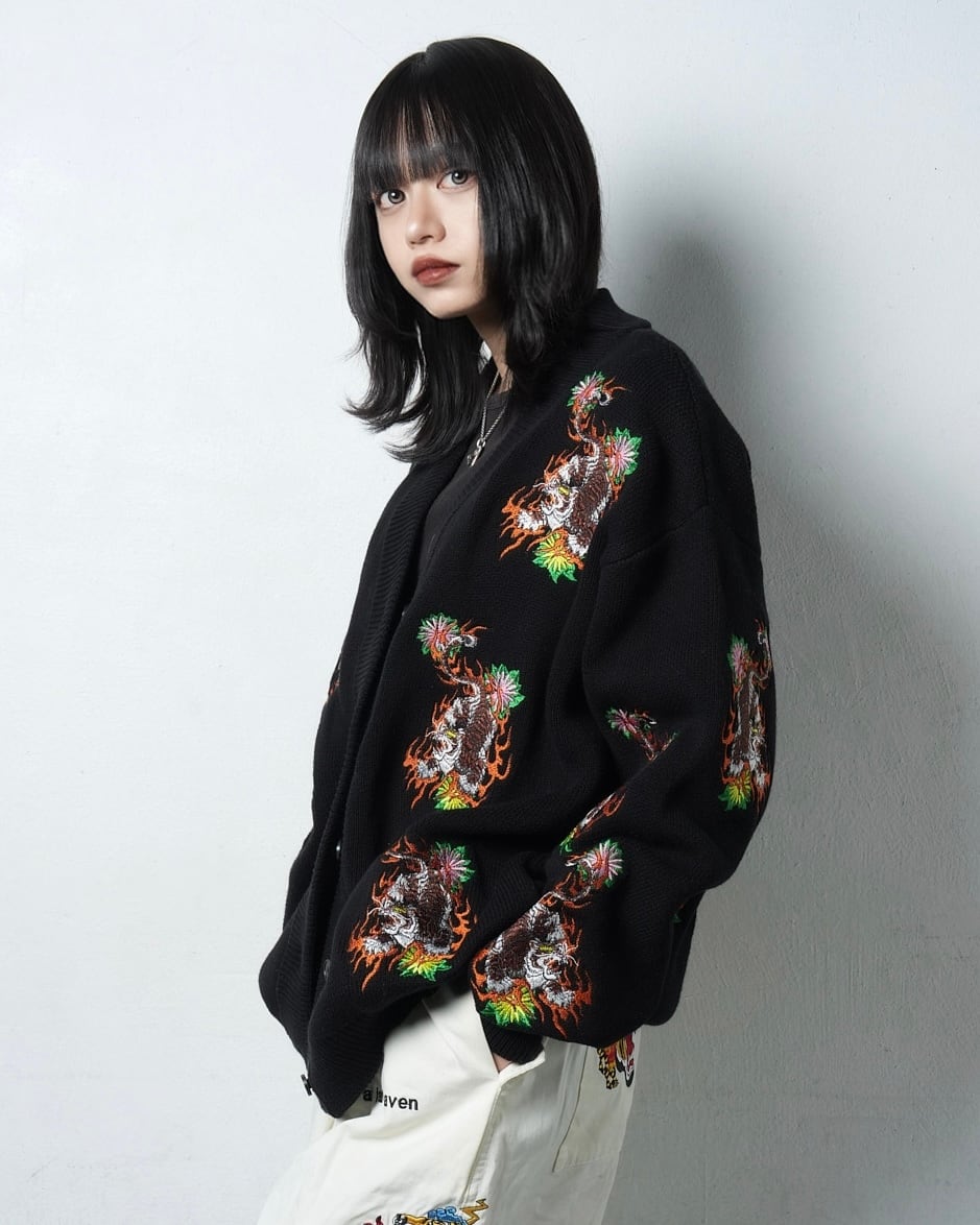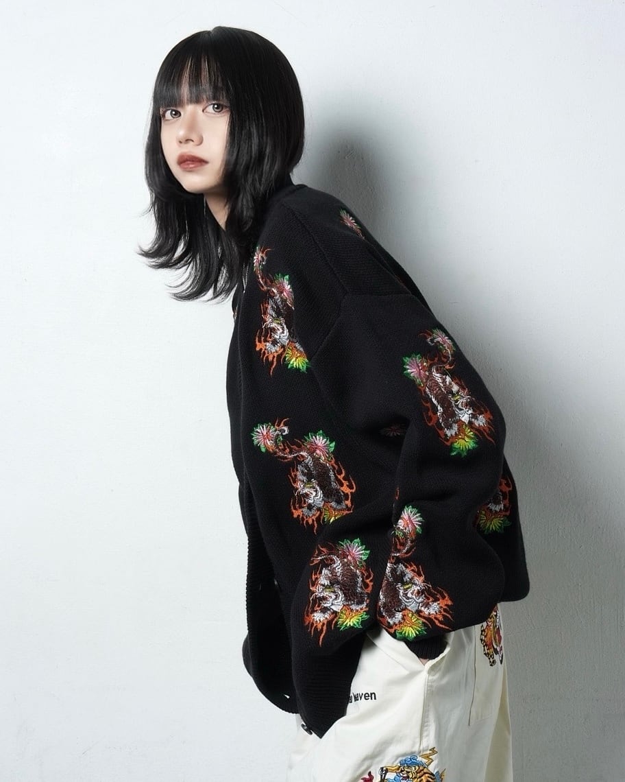 総柄 TIGER knit cardigan/Black