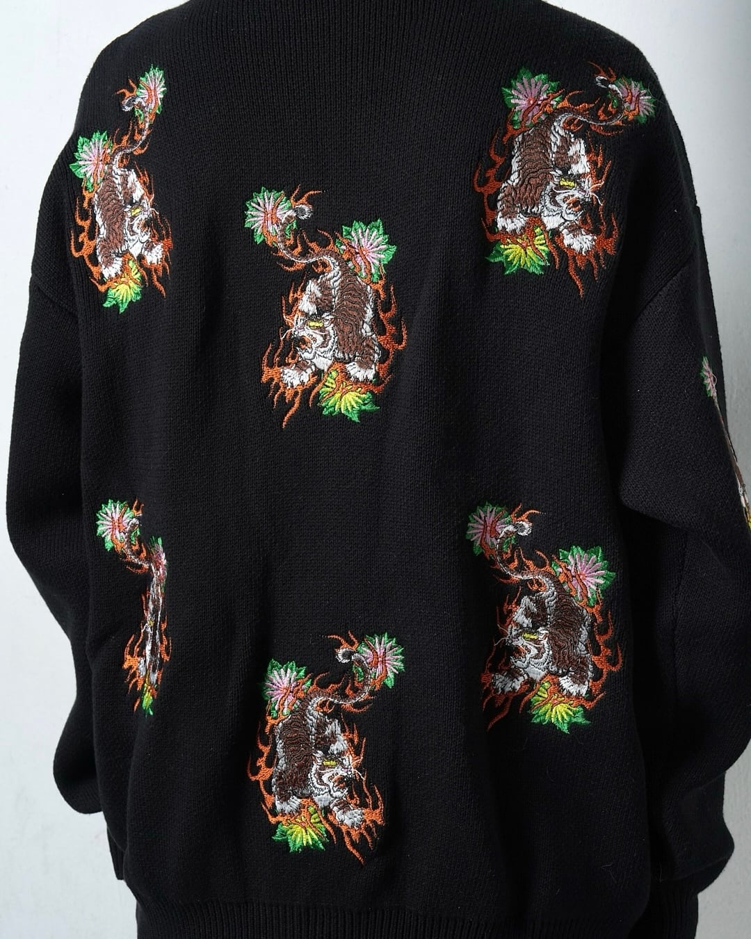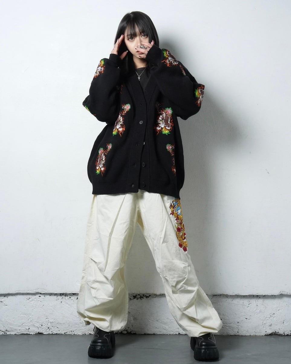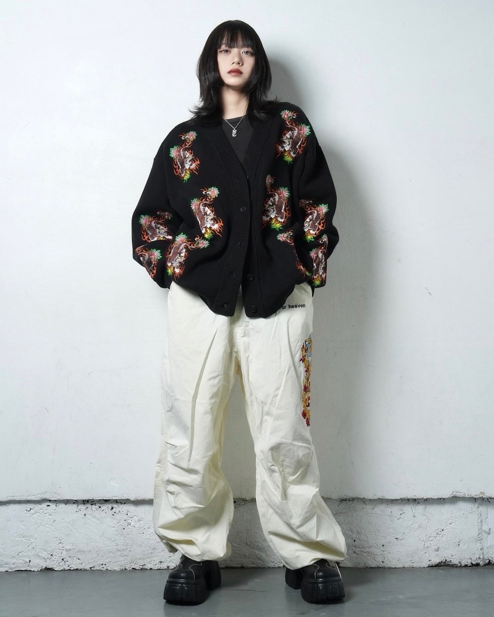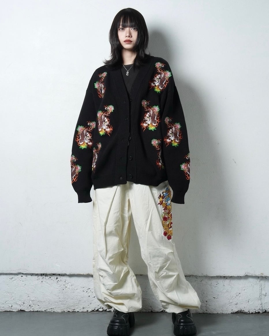 総柄 TIGER knit cardigan/Black