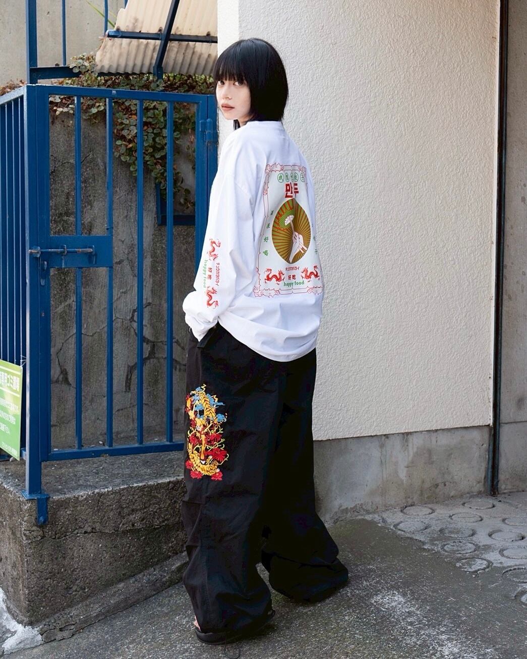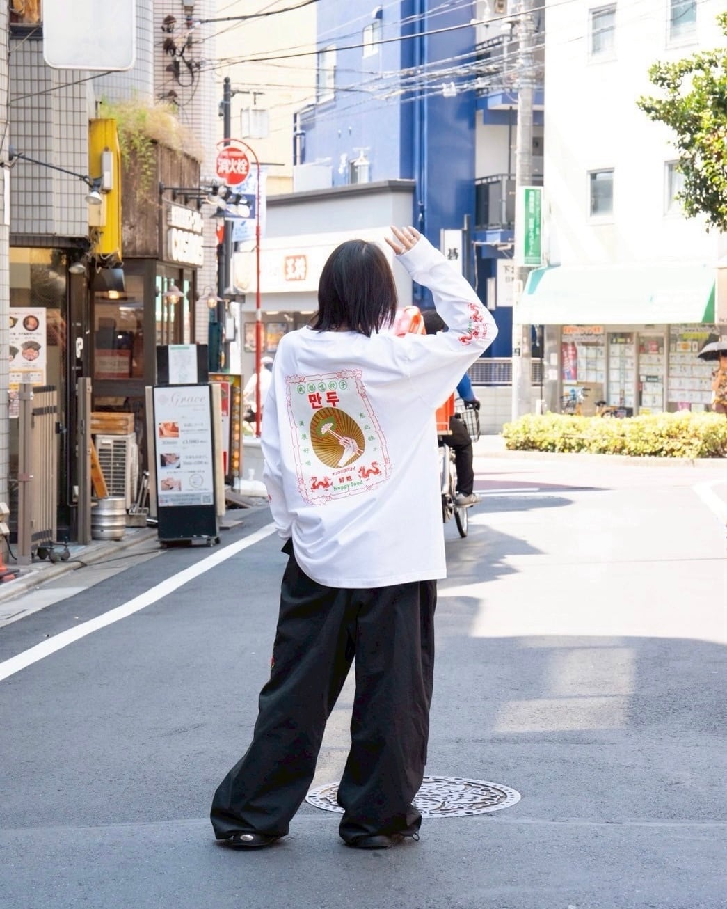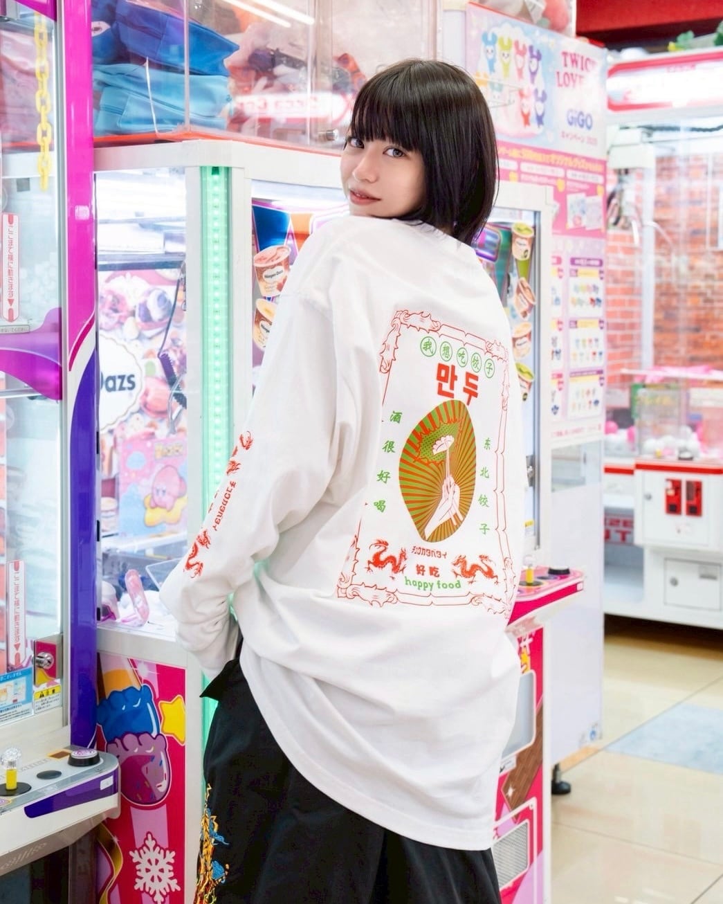餃子がメインイラストのオーバーサイズ中華ロンT。